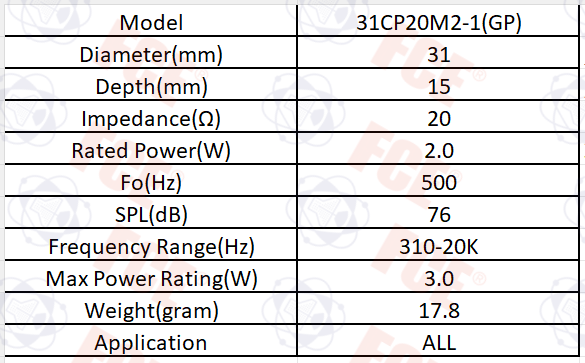 31CP20M2-1(GP) - 20Ω 2W Speaker