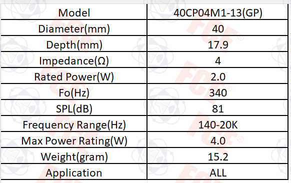 40CP04M1-13(GP) - 4Ω 2W Speaker