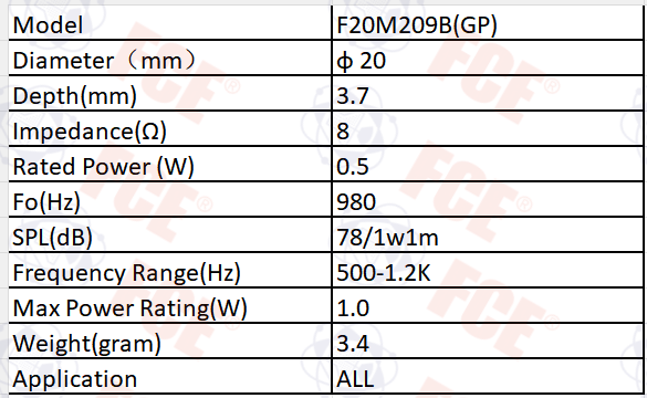 F20M209B(GP) - 8Ω 0.5W Speaker