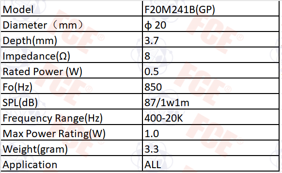 F20M241B(GP) - 8Ω 0.5W Speaker