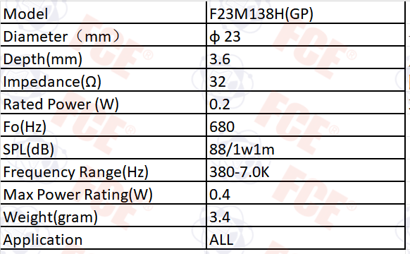 F23M138H(GP) - 32Ω 0.2W Speaker