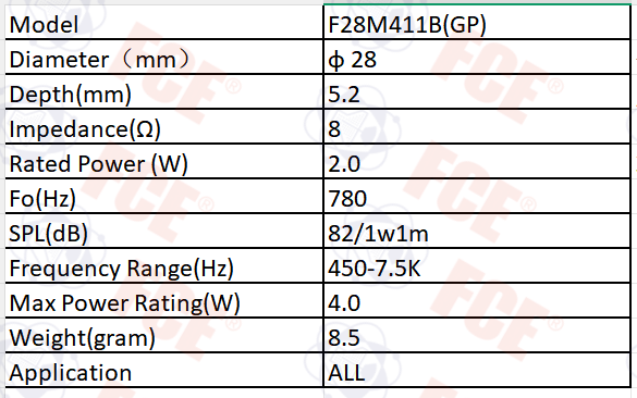 F28M411B(GP) - 8Ω 2W Speaker