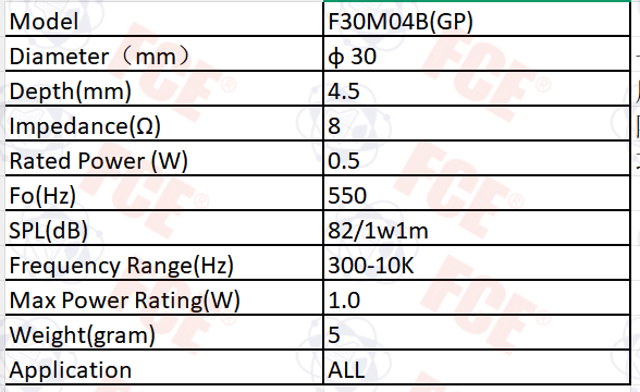 F30M04B(GP) - 8Ω 0.5W Speaker