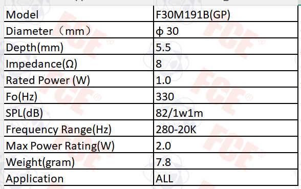 F30M191B(GP) - 8Ω 1W Speaker