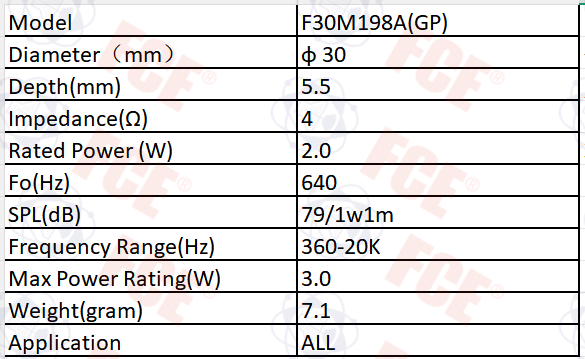 F30M198A(GP) - 4Ω 2W Speaker
