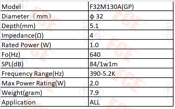 F32M130A(GP) - 4Ω 1W Speaker