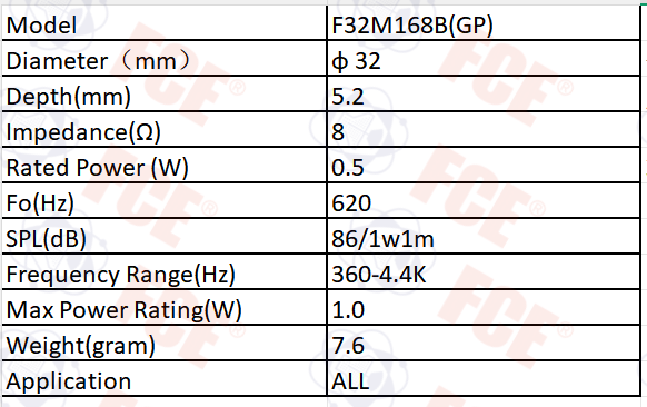 F32M168B(GP) - 8Ω 0.5W Speaker