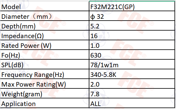 F32M221C(GP) - 16Ω 1W Speaker