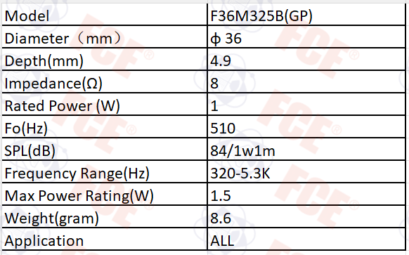 F36M325B(GP) - 8Ω 1W Speaker