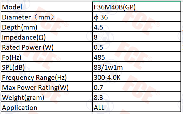 F36M40B(GP) - 8Ω 0.5W Speaker