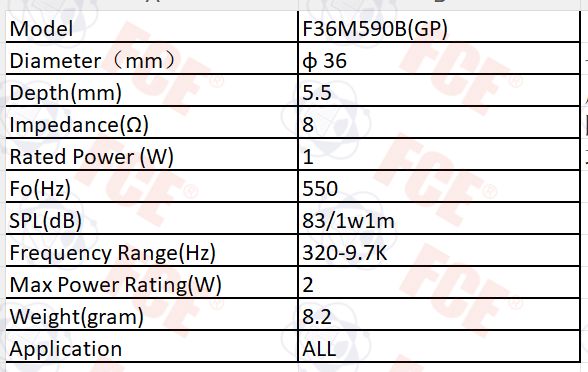 F36M590B(GP) - 8Ω 1W Speaker