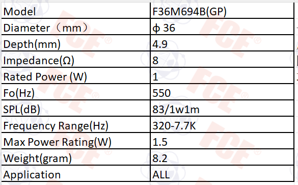 F36M694B(GP) - 8Ω 1W Speaker