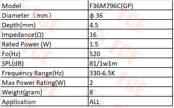 F36M794C(GP) - 16Ω 1W Speaker