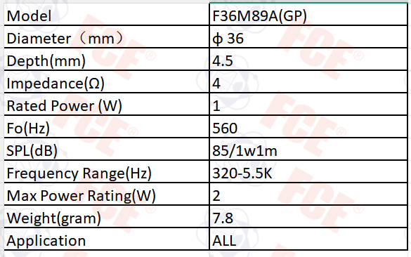F36M89A(GP) - 4Ω 1W Speaker