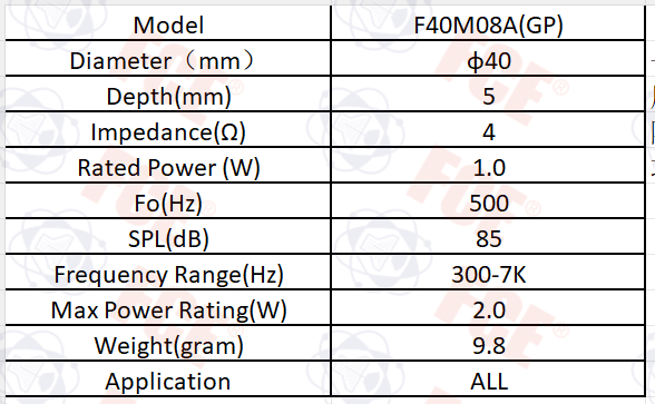 F40M08A(GP) - 4Ω 1W Speaker