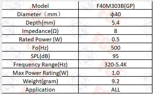 F40M303B(GP) - 8Ω 0.5W Speaker