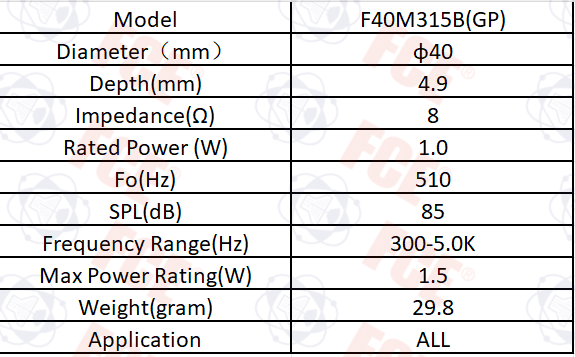 F40M315B(GP) - 8Ω 1W Speaker