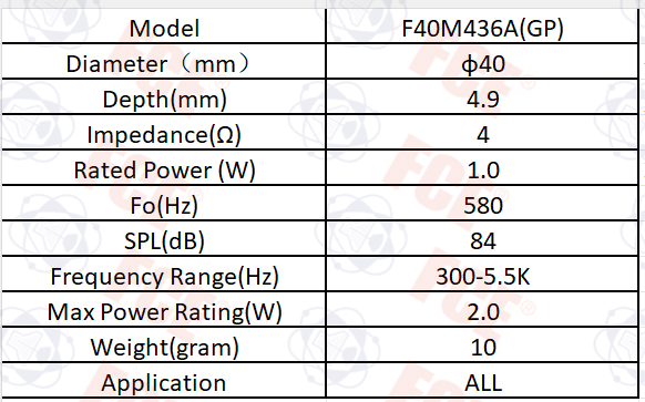 F40M436A(GP) - 4Ω 1W Speaker