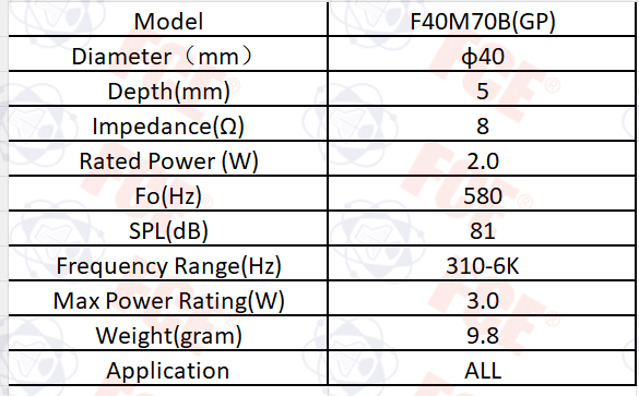 F40M70B(GP) - 8Ω 2W Speaker