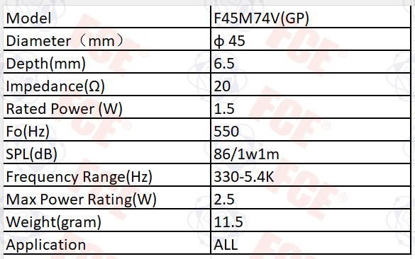 F45M74V(GP) - 20Ω 1.5W Speaker