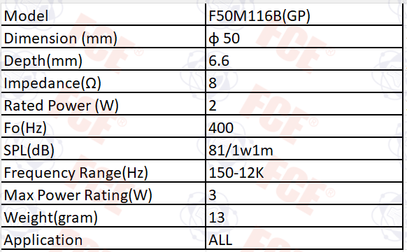 F50M116B(GP) - 8Ω 2W Speaker