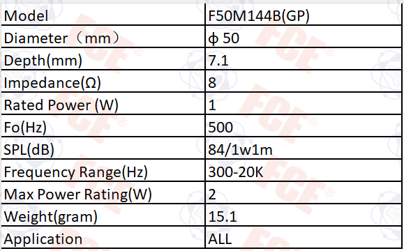 F50M144B(GP) - 8Ω 1W Speaker