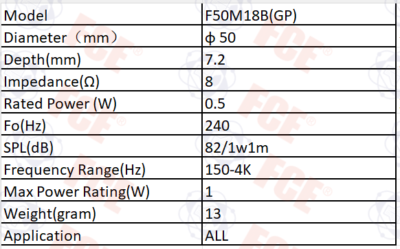 F50M18B(GP) - 8Ω 0.5W Speaker