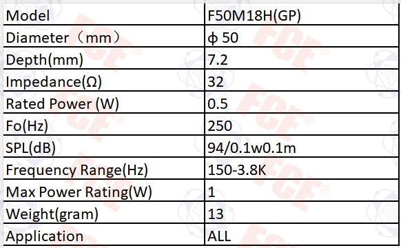 F50M18H(GP) - 32Ω 0.5W Speaker